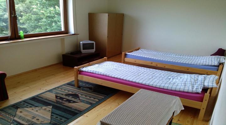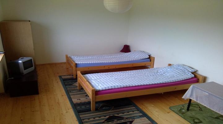 - wygodne łóżka - materace sprężynowe (łóżka podwójne oraz pojedyncze), pościel, szafa, szafki, stoliki, krzesła, TV, radio, internet Wi-fi.