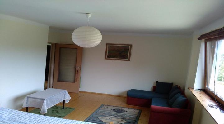3 pokoje po ok 25m2 każdy z dużymi oknami i pięknymi widokami na lasy, w tym jeden pokój z balkonem.