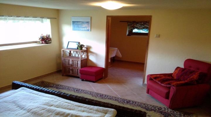2 pokoje po ok 25 m 2 każdy w tym jeden z aneksem kuchennym - kuchnia w pełni wyposażona, drugi pokój zawiera oprócz części sypialnej - część dzienną - jadalnie.